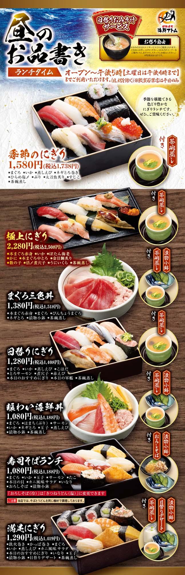 【海鮮アトム】《日替りおみそ汁無料》冬ランチメニュー第2弾