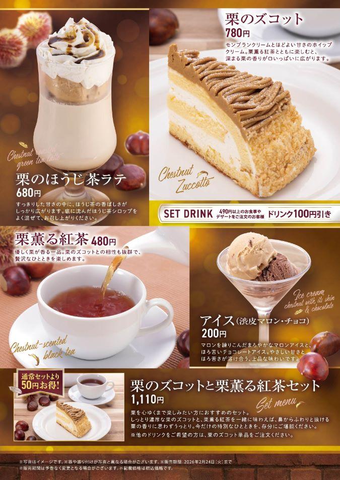 小さな森珈琲では、マロンスイーツとドリンクを2025年11月5日(水)より期間限定で販売いたします。