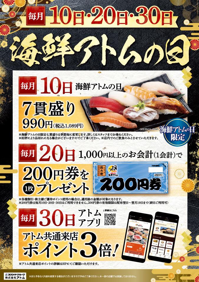 【海鮮アトム】毎月10日・20日・30日は「海鮮アトムの日」 HOT